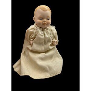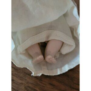This charming antique bisque baby doll, dressed in a delicate handmade gown, offers a nostalgic glimpse into the past. A unique collectible piece that captures the innocence and craftsmanship of a bygone era. HEAD IS NOT ATTACHED