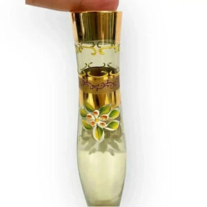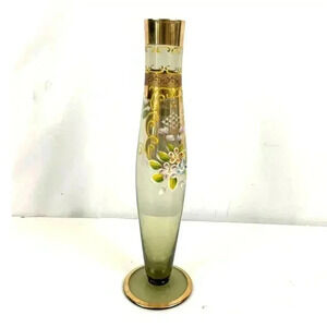 Antique Hand Painted Floral with Gold Trim Glass Bud Vase 8"
