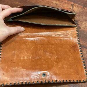 Antique Hand Tooled Leather Mexican Clutch Purse 10”x6”x.5”