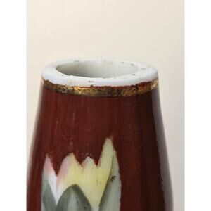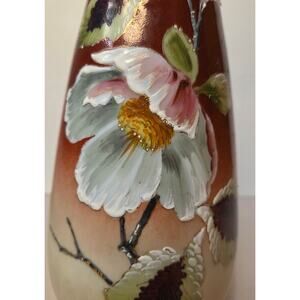 Antique Hand-Painted Milk Glass Vase Victorian Floral Enamel 9.5"; c. 1900