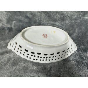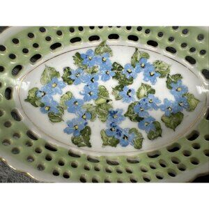 Antique Hand-Painted Porcelain Reticulated Serving Tray With Blue Floral Design