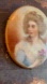 Antique Hand-Painted Portrait Pin, Signed E.B.J. Victorian c.1880s Limoges Style