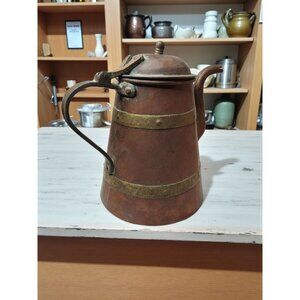 This antique handcrafted copper kettle with brass brace rings merges timeless elegance with functionality, perfect for your kitchen or collection. Great display and conversation piece