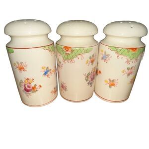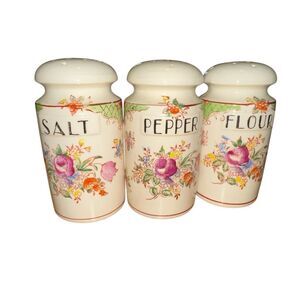 Antique Handpainted Japanese Spice Jar Set: Floral Design Salt, Pepper, Flour
