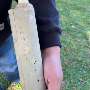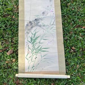 Antique Hanging Scroll Cherry Blossoms Flower Bamboo Leaves Painting Japan