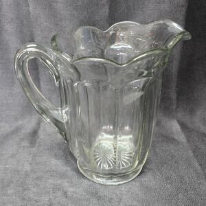 Antique Heavy Glass 8 Panel 40 oz. Pitcher with Scalloped Rim Serving Beverage. Preowned condition.