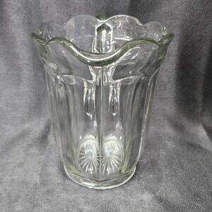 Antique Heavy Glass 8 Panel 40 oz. Pitcher with Scalloped Rim Serving Beverage