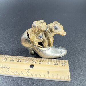Antique Heavy Metal Shoe Sandal With Dogs Figurine Made In Japan Vintage Decor