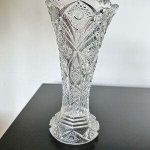 Antique Imperial Glass Sawtooth Hobstar Trumpet Vase NUCUT Maker's Mark