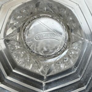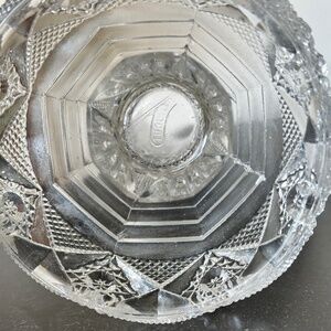 Hobstar pattern. Sawtooth edge. Flared top. Pedestal base.