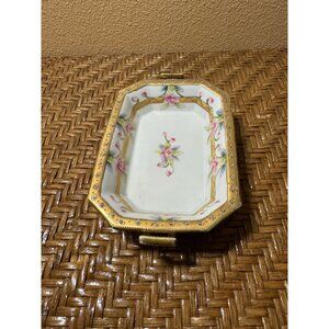 Antique Imperial Nippon Porcelain Handled Tray With Floral Design & Gilded Trim