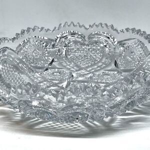Antique Imperial Glass Nucut Hearts Sawtooth Edge Bowl 1920’s 8.5” x 2.5