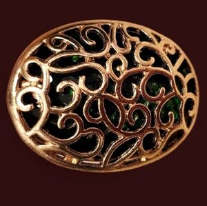 Antique Inspired Gold and Green Filigree Ring With Stretchy Band OSFM.