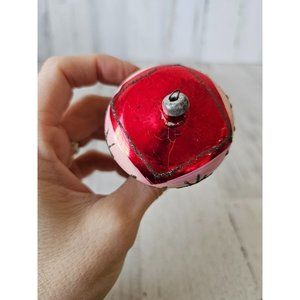 Antique Italy topper glass ornament red metallic glitter unique Xmas tree