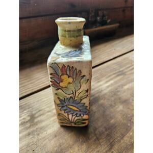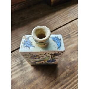 Bring a touch of old-world charm to your space with this stunning antique-style glazed pottery bottle vase. Featuring a square-bodied form and narrow neck, this piece is beautifully hand-painted in a traditional Iznik and Persian-inspired design. One side displays a bold floral medallion, while the reverse showcases a whimsical bird nestled among colorful blooms—each brushstroke rich with character and history.