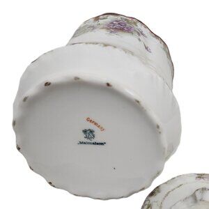Antique RARE Collectible J&C Malmaison Germany hand painted cracker jar features soft Purple flowers with foliage & Gold Detailing. This piece bares the J&C Maimaison series mark 1872-1896. Antique character and age with no chips or cracking 6.75" x 5.75" 1Lb 2oz
