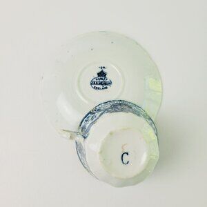 Antique J&G Meakin York Flow Blue Teacup and Saucer Gilded Gold c.1890-1910