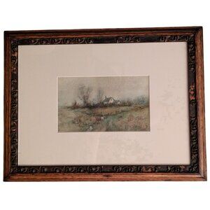 This piece by James Gale Tyler, titled "Babbling Brook," is a pastel work from the Brooklyn Art Club. Preserved with a new mat, it features a serene landscape scene, capturing a quaint house surrounded by nature. The ornate wood frame adds a classic touch, enhancing its historical and artistic value.