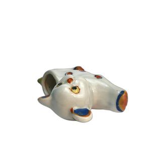 Add a whimsical touch to your shelf or collection with this vintage Japanese lusterware Bonzo-style dog toothpick holder 🐾✨. A charming and rare figural piece, it features a spotted red and blue dog inspired by Bonzo, the beloved British cartoon pup created by George E. Studdy in the 1920s.