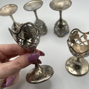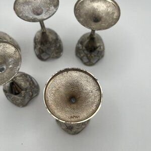 Antique Japan Metal Silver Plated Grape Grecian Cordial Glass Holders 5 Cups