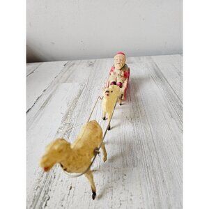Antique Japan celluloid Santa reindeer plastic as is display sleigh