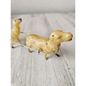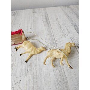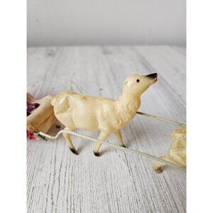 Vintage Santa Claus Sleigh With Two Reindeer Pulling Set Figurine Christmas Decoration