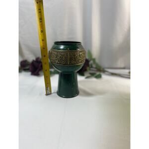 "Discover the timeless beauty of this Antique Japanese Bronze Cabinet Vase from the Meiji Period. This exquisite piece features a striking green base, perfectly complemented by a bronze band, showcasing the refined artistry and craftsmanship of the era. The elegant design and rich patina of the bronze create a sophisticated and unique addition to any collection or home decor.