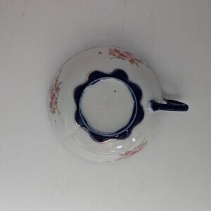 Antique Japanese Geisha Girl Cup Hand Painted Cobalt Blue Floral Gold Moriage