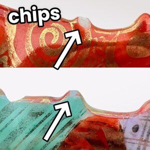 Condition: very good vintage; 2 small chips on rim, 1 larger chip, faint hairline crack visible inside but not felt on surface. SEE PHOTOS.