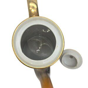 This exquisite antique Japanese porcelain teapot features a delicate hand-painted bamboo and flower motif. Its elegant design showcases the artistry and craftsmanship of traditional Japanese ceramics, making it a distinguished addition to any collection or tea service. The teapot's graceful form and intricate detailing highlight its historical and cultural significance.
