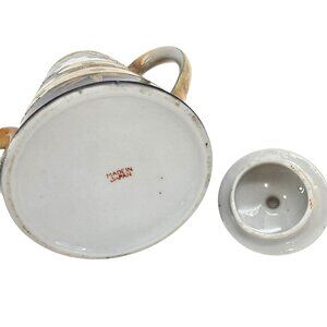 Antique Japanese Porcelain Teapot With Hand-Painted Bamboo & Flower Motif JE326