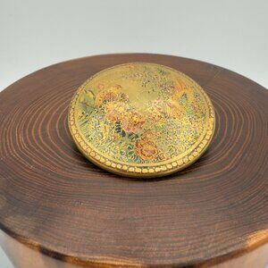 Exquisite hand-painted Satsuma brooch featuring intricate designs of birds and flowers. This antique Japanese porcelain piece is a unique addition to any collection, showcasing exceptional craftsmanship and attention to detail.