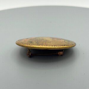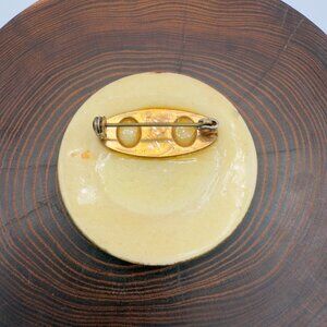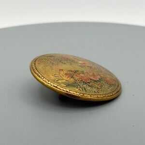 Antique Japanese Satsuma Ceramic Porcelain Hand Painted Brooch Pin Birds Flowers