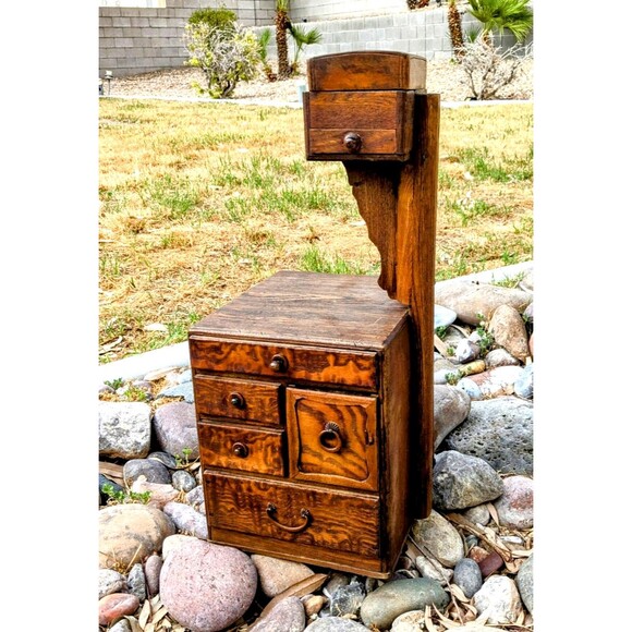 Antique Japanese Zelkova Wooden 7-Drawer Tansu Haribaku Sew/Trinket Storage Box