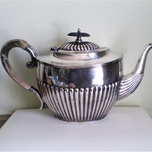 Antique John Round & Sons Sheffield England Silverplate Gadroon Edge Teapot