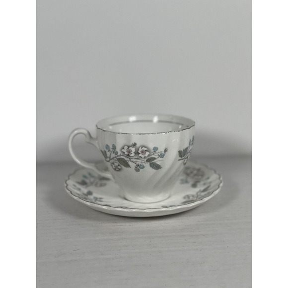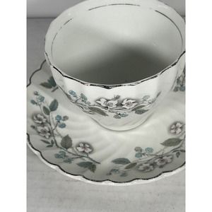 This listing is for an Antique Johnson Bros Tea Cup & Saucer it is a beautiful Floral, Blackberries or Raspberry pattern Regency white