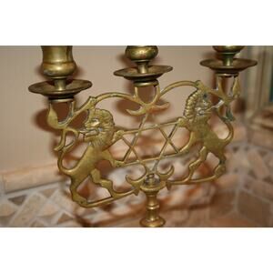 Antique Judea Lions Three-Armed Shabbat Candelabra