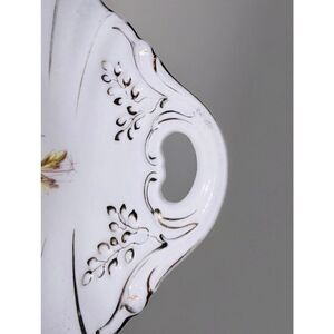 Antique KPM Germany Scalloped Serving Bowl-White Floral Gold Handles numbered