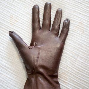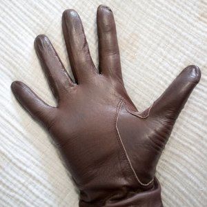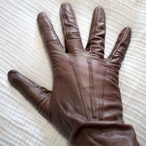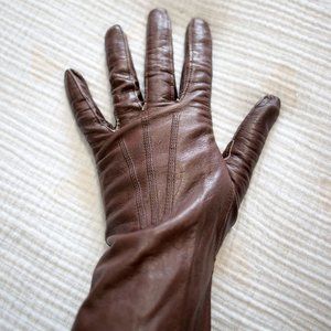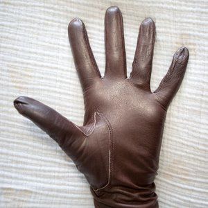 AMAZING authentic antique 1940's-50's ladies buttery soft chocolate brown leather gloves with stitching contour detail on back. Barely worn, these gloves are in amazing condition for their age. Inside indicates size 8, fit like small (I wear size medium and they are a bit snug as you can see in the photos), also some other stamps inside that I do not know the meaning. Very classic and elegant!!