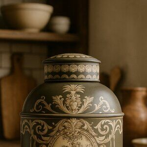 Antique Large Toleware Chinoiserie Tea Caddy Canton n°3 Iron Tea Box, Old Tole Tea Canisters , Victorian Toleware Tins, Antique Vintage Lover Gift Ideas, Birds Design Canister
