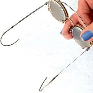 Antique 1930's silver plated coil temple glasses with fitted sunglass clip ons.