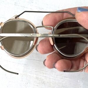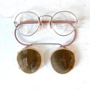 Antique Larry Davis Metal Round Eyeglasses w Sunglasses Clip On Near Sighted Rx