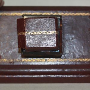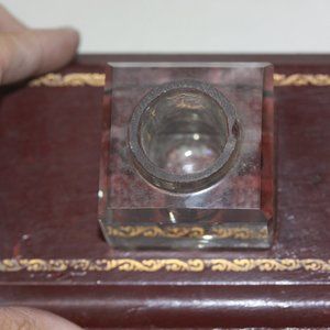 Antique Leather & Glass Inkwell & Base Pen Rest