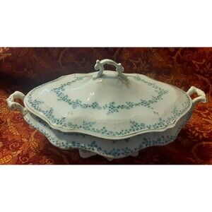 Antique Lidded Oval Tureen WH Grindley & Co Flow Blue Aldine Pattern