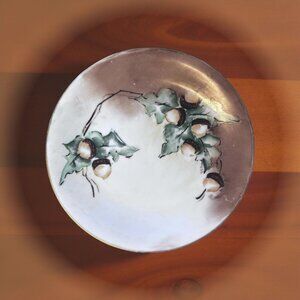Antique Limoges Hand-Painted Cabinet Plate, Acorns & Oak Leaves, Signed c. 1900