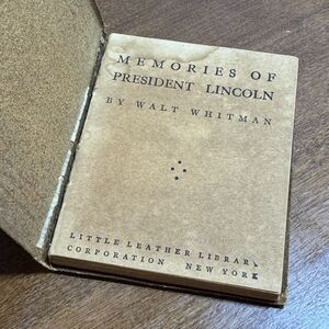 The Antique Little Leather Library Book "Memories of President Lincoln" by Walt Whitman features a green cover and was published in the 1900s.