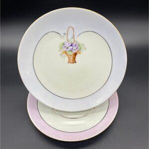 Antique Luncheon Plates Hand Painted Pink Cabbage Rose Purple Plate Wall Bavaria