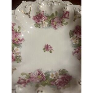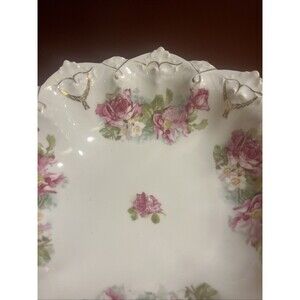 Antique MZ AUSTRIA Hand Painted Bowl Pink Roses Embossed Mold Victorian