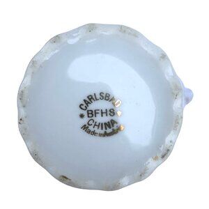 This is a beautiful, antique Carlsbad BHFS of Austria china creamer pitcher. This vintage Carlsbad porcelain creamer embodies the elegance of a bygone era, adorned with a delicate pink and white gradient. The gold trim adds a touch of opulence, enhancing its timeless beauty. Ideal as a decorative piece or for serving, it evokes the charm of antique table settings.