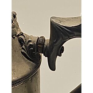 This antique tea pot is a stunning piece from Manning Bowman & Co, featuring a Victorian style and made of silverplate. It dates back to the late 19th century, specifically in 1899 as indicated by the patent mark. The intricate design and craftsmanship of this tea pot reflect the elegance and sophistication of the Victorian era, making it a valuable addition to any antique silver collection.